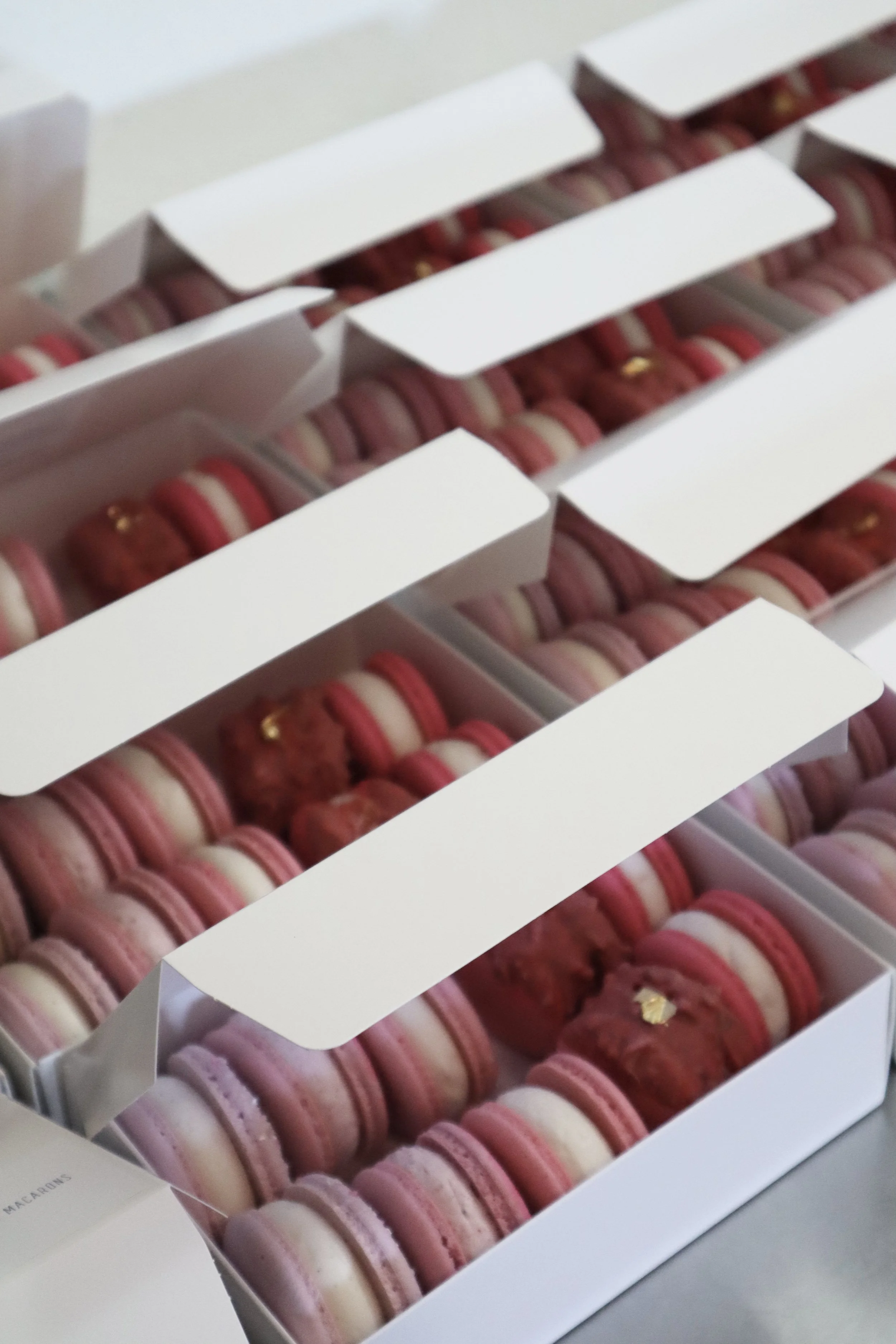 A pop up box has 10 macarons. Each box is themed with fun limited edition colors, shapes and flavors. Pop up boxes are available monthly. The only real question you need to ask yourself is: how many boxes will I buy?